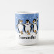 Dancing Penguins Design Coffee Mug with customisable background colour and text.
