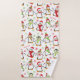 Dancing Penguins Red and Green Pattern Christmas Bath Towel Set