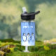Dancing Penguins Design Water Bottle with customisable background colour and text.