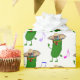 Green dancing pickle with music notes, orange glasses and Mexican sombrero on a white background.