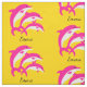 Make pjs, bedroom decor, bags, and so much more with this fabric that features dancing pink dolphins on a golden background! Customise with a special message or name.