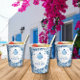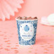 Mediterranean Greek musical bougainvillea-inspired Dancing Queen baby shower editable paper cups. Indulge in the charm of the Mediterranean with the Mamma Mia-themed baby shower collection! Celebrate your little one's arrival amidst the serene hues of blue and white tiling reminiscent of the Santorini seaside. The invitations are made with playful elegance and pink bougainvillea, while the signs and decor are colourful and beautifully highlight the baby shower celebration. #zazzlemade