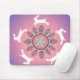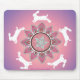 Dancing white rabbits surround a stylised lotus flower in this mouse pad design inspired by henna mehndi patterns. Lavender, pink, and violet hues.