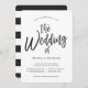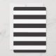 The reverse side contains a solid charcoal black and white stripe pattern complementing the front of the invitation.