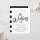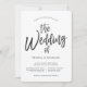 A unique wedding invitation featuring dancing script style lettering followed by your unique wedding day details in black and white.