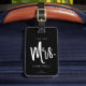 Celebrate your wedding or your soon coming wedding day with this unique luggage tag that celebrates your name change. It features the preposition "Mrs." followed by the new last name. A great gift to give the bride after her wedding celebration.