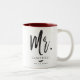 Dancing Script Lettering Mr. and Mrs. Two-Tone Coffee Mug