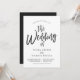 A unique yet minimalist wedding invitation featuring dancing script style lettering followed by your unique wedding day details in black and white.