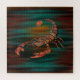 Water ripples underneath are illuminated with reflecting southwestern earth color tones of this mighty Scorpion King walking on top of water. Color palette tones of turquoise blue and green, black, yellow, orange, gold, and red.