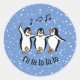 Dancing Singing Penguins Design Sticker on a snowy background, with customisable text and colour.