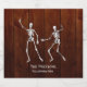 Two dancing skeletons on a dark brown wooden background decorate this Halloween Beer Label, making it perfect for you next party.