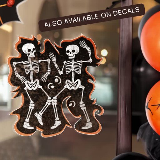 Get ready for spine-tingling fun this on Halloween or the Day of the Dead! Our hauntingly stylish design features two mesmerising dancing skeletons against a sinister black and orange cloud. Perfect for trick-or-treat, haunted houses, and all your spooky gatherings. Make this Halloween unforgettable with our spine-tingling masterpiece. Order now and let the Halloween festivities begin.