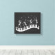 Get into the Halloween spirit with this spooky canva print featuring three skeletons dancing on a keyboard, surrounded by stars and music notes. It is the perfect gift for music teachers.