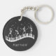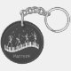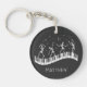 Get into the Halloween spirit with this spooky black and white keychain featuring three skeletons dancing on a keyboard, surrounded by stars and music notes. Perfect for any musician or music lover.