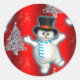 Dancing Snowman on Red Christmas Classic Round Sticker