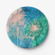 Abstract watercolor art original art of dandelion flower blowing in the breeze on an abstract blue and green cool coloured background.