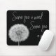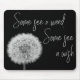 Elegant and motivational mouse pad featuring an original black and white macro photograph of a beautiful dandelion with an inspirational quote in an elegant calligraphy white font that reads "Some see a weed, Some see a wish"
