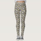 Cute leggings with gold and white dandelion clocks on a dark grey background.