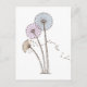 Three coloured dandelion clocks with seeds blowing off it the breeze, drawing.