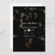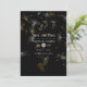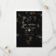 Rustic gold and white dandelion seed confetti wedding save the date against a black background.