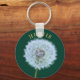 This keychain or keyring is ready to be personalized with a name or other text. It features a photo of a dandelion flower (okay, technically a weed) or dandelion clock set against a dark green background. Your name is above in lime green lettering.