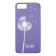 This floral iPhone 7 Case is accented with a white dandelion and floating seeds on a violet, purple background, and is easy to personalise with your name or monogram.