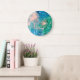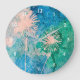 Dandelion watercolor abstract blue and green large clock