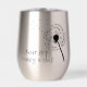 Dandelion Wishes Design Thermal Wine Tumbler with customisable text on both sides.