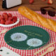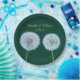 This paper plate is ready to be personalised with your own text. It features photos of dandelion flowers or dandelion clocks against a dark green background with your message in spring green letting in a combination of script and print characters.