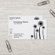 A stylish modern business/profile card with an simple but attractive arrangement of dandelion clocks. Company and address details on the front with name and other contact details on the back.