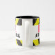 Fun bold junior tea boy construction workers mug. A perfect fun gift for new starters in offices or on the construction site, reads danger apprentice at work or customise with the words of your choice. Design by Sarah Trett.