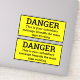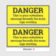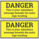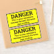 Two danger warning signs. Change the wording to display your own message on each. Medium size. 6 inches wide.