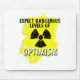 Declare to the world just how Optimistic you are with this image of a symbol for radioactivity is paired with the phrase "Expect Dangerous Levels of Optimism." If sometimes people find your optimism annoying...give them fair warning that your optimism borders on the danger zone...so they can either steer clear or see if they're tough enough to handle it.