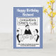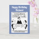 This card is great fun and good quality. I loved the humour inside and on the back. There is the opportunity to change the orientation of this card from landscape to portrait, which I did. It is relatively straightforward to amend the typeface to fit the new orientation. It was well packaged with no plastic. The printing on this card is excellent.