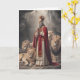 Daniel in the lion`s den greeting card .A bearded Daniel in regal attire, standing upright with his hands clasped in prayer. He wears a crown and a robe with a red sash. Surrounding him are four majestic lions, with one lion lying down and the other three standing. The setting appears to be a rocky cave or cavern with a soft, diffused light illuminating the scene.