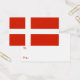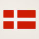 The national flag of Denmark, Dannebrog, is red with a white Scandinavian cross that extends to the edges of the flag.