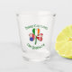 Shamrock with three flags, one in each leaf. The flags of Denmark, Ireland and the United States of America (USA) are shown. On top of the shamrock are the words THREE CULTURES. The words show in dark green, Celtic style letters in a half circle. Below the shamrock, in similar lettering, are the words ONE YOURNAME. Place your name appropriately for a customised look to this shot glass. Or, add someone else's name for a personalised gift. Design was created to celebrate St. Patrick's Day, 4th of July and Danish holidays.