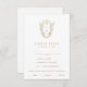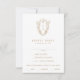 The simple yet classic design features an elegant and timeless ornate crest monogram with florals and greenery surrounding the initials of the couple.