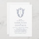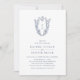 The simple yet classic design features an elegant and timeless royal crest monogram with florals and greenery surrounding the initials of the couple.