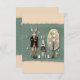 Easter card with green torn paper background both fron and back. Depending upon size the torn aspect may not be shown or printed on all. If this is a problem, please contact us and we will resize to fit your needs. Dapper Rabbit and girl standing with arms crossed and girl wearing bunny ears. Tree in collage springtime effect. The colours may not print in neon, but the closest colours will be chosen. Rabbit and egg also on illustration.