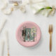 Dapper Easter paper ware for dining. Print of a dapper bunny and girl with coordinating outfits, glasses, and bunny ears. Spring image with green background and collage tree, also includes a rabbit and egg all in collage style.