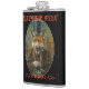 This flask is illustrated with a vintage dapper Victorian fox in a top hat. above runs the text "Dapper fox" and below "Clothing Co"