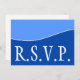This dapper, simple RSVP card design features the message "R.S.V.P." on the front. It also features a customisable RSVP form on the back. RSVP cards like this might be used to find out who will be attending a birthday party, a retirement party, a graduation party, a wedding shower, or some other celebration.