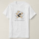 Funny black sheep t.shirt. A group of white sheep with pink faces and grey ears are surrounding a woolly black sheep, also with a pink face and grey ears. Below is a caption "dare to be different" in black lettering.