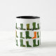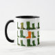 A good quality white ringer mug with a motivational slogan, 'Dare to be Different', illustrated by one bright orange, red-spotted boot among rows of similar green wellies. A handpainted paper collage suitable for many situations!