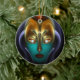 At the sides of her face and around the back of her head is a partially metallic cloak like garment to give her the look of a supreme ruler; with a star lighted necklace as an accent piece.