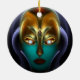 Daria's face is composed of a copper metallic skull and a lower blue organic face that includes a mechanical looking nose, cybernetic eyes and the skull clamping mechanism.