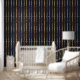 Dark Academia Dark Blue and Gold Striped Wallpaper