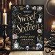 Invite your guests to a hauntingly beautiful Sweet Sixteen celebration with this gothic-inspired invitation. The dark floral accents, vintage typography, and mysterious elements like skulls and ravens set the perfect mood for a Dark Academia-themed party. Easily customise this invitation with your event details to create a unique and memorable keepsake.