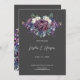 Our gothic wedding invitation suite is perfect for couples who are looking for a dark and moody aesthetic. The watercolor floral bouquet is accented with purple, violet, and indigo flowers, with white roses, giving the suite a bold and dramatic look. The dark coloured background makes the colours pop and creates a stunning contrast.